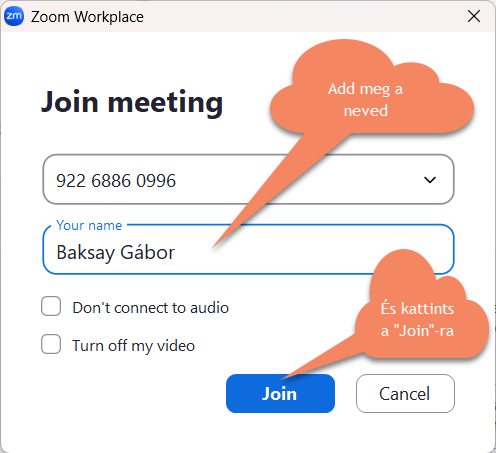 Meeting ID (A találkozó azonosítója): 922 6886 0996